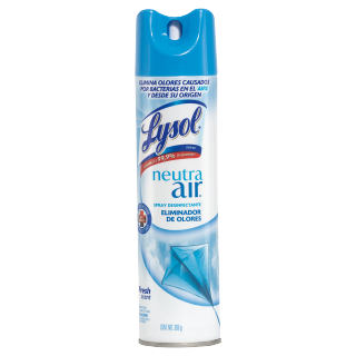 A diferencia de los Ambientadores de aire que sólo enmascaran olores, Lysol® Neutra Air® Spray - Fresh Scent - Desinfectante Eliminador de Olores, elimina los malos olores tales como el humo de cigarro, los alimentos, el moho, la humedad, cuarto de baño y los olores de mascotas. Solucione el problema de malos olores desde su origen con Lysol® NEUTRA AIR® Spray - Fresh Scent - Desinfectante Eliminador de Olores. Use este producto en el baño, fregaderos de cocinas, botes para pañales, cajas de arena para mascotas, etc. Elimina el 99,9% de gérmenes** y olores causados por bacterias. Lysol® NEUTRA AIR® Spray - Fresh Scent - Desinfectante Eliminador de Olores, aire tan limpio que puedes oler la frescura. **Elimina el 99,9% de Staphylococcus aureus, Escherichia coli (E.Coli) 0157:H7 y el virus de la Influenza Tipo A en superficies duras no porosas en 10 minutos.